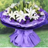简介:12枝多头白百合,加紫色勿忘我,满天星点缀,...