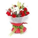 简介:白色香水百合1支,红玫瑰19支,情人草、枙子...