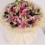 简介:6支精品粉色香水百合.绿叶搭配,粉色卷纸豪华...