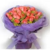 简介:粉玫33枝,满天星,绿叶,绵纸圆形包装(需提...